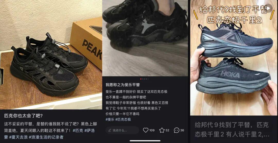社媒上的风向亦能侧证此观点。当搜索“大牌运动鞋平替”时,总能看到匹克的身影。已被网友列入阿迪达斯、亚瑟士、萨洛蒙、斐乐、Hoka等品牌的“平替名单”。