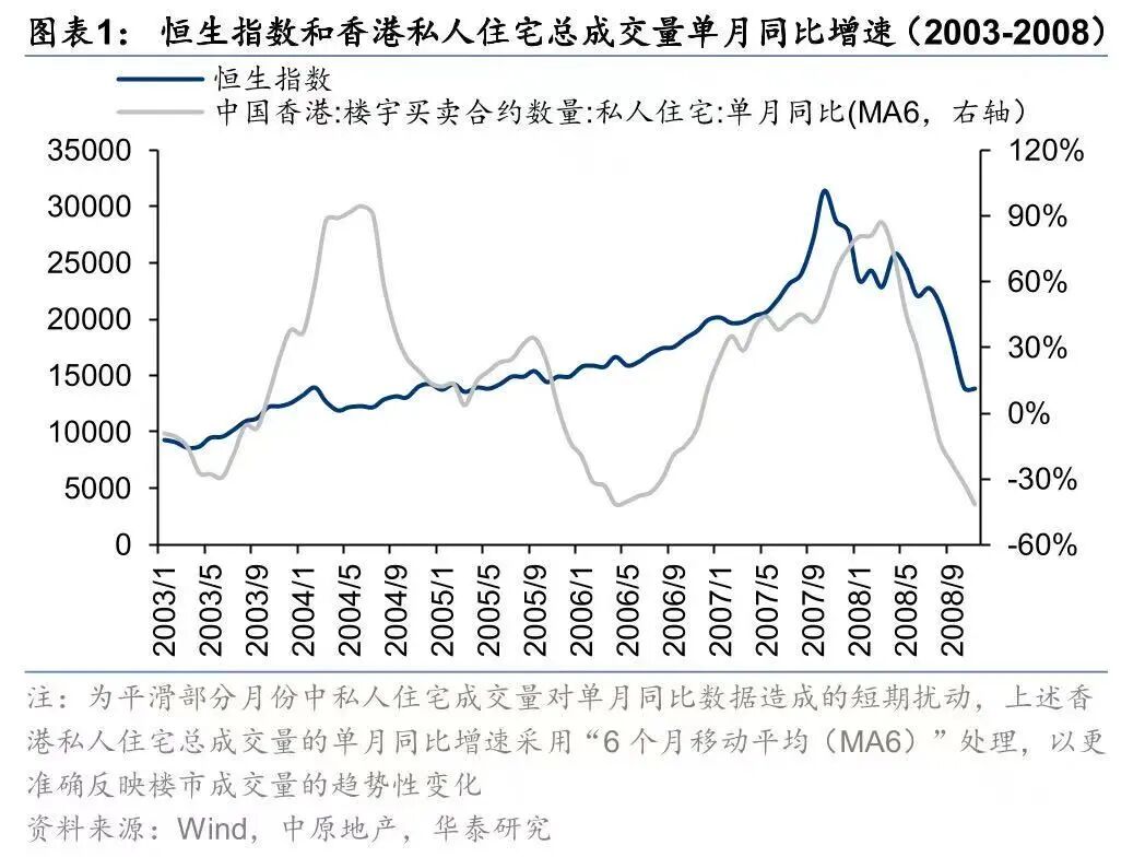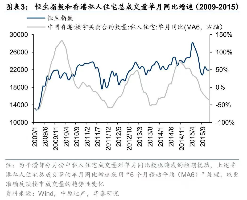 基于几轮周期的指数趋势对比,华泰研究认为,香港股市与楼市在趋势上存在联动关系,恒生指数的上涨往往领先于楼市成交量和价格的修复。