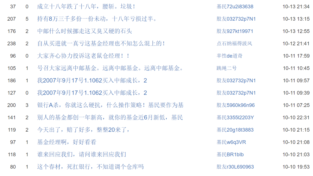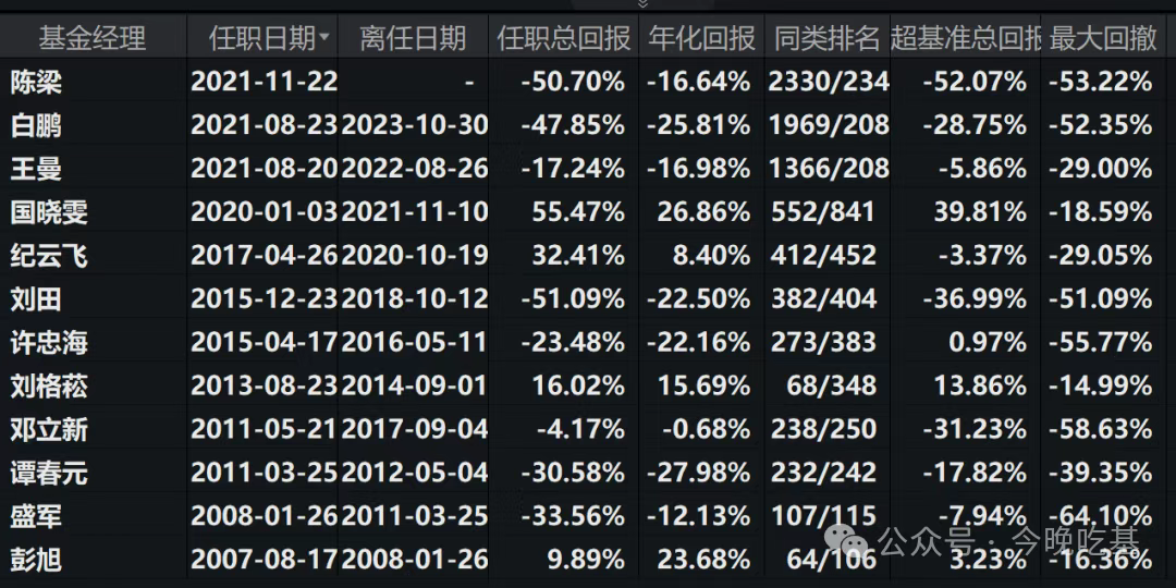 这之前,中邮核心成长混合似乎是被“下蛊”了,成立18年经历12任基金经理,累计亏损近50%,在中国公募基金史上极为罕见,基民忍不住在基金吧留言,“成立十八年跌了十八年,腰斩,垃圾!”