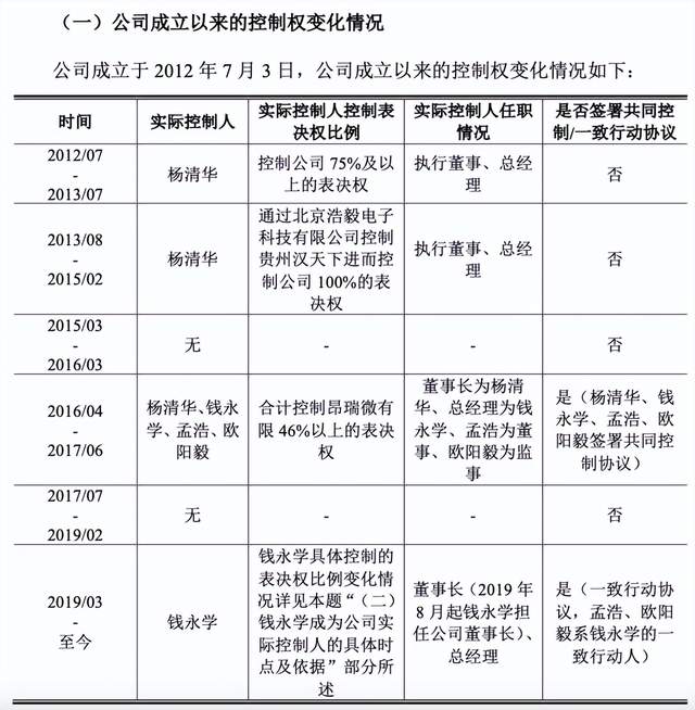 “《终止协议》的签署背景为杨清华拟逐步从股权及管理上退出昂瑞微有限, 将主要精力用于经营贵州汉天下及苏州汉天下,因此各方基于公司当时的实际情 况,同意终止《共同控制协议》。公司再度认定无实际控制人。”昂瑞微表示。