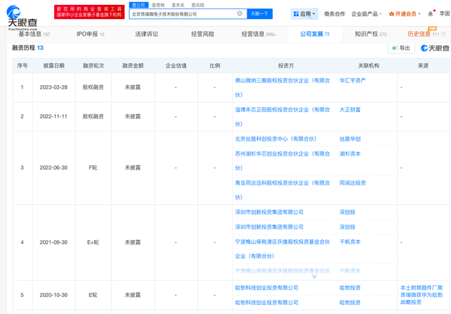 天眼查显示,昂瑞微共经历了13轮融资。