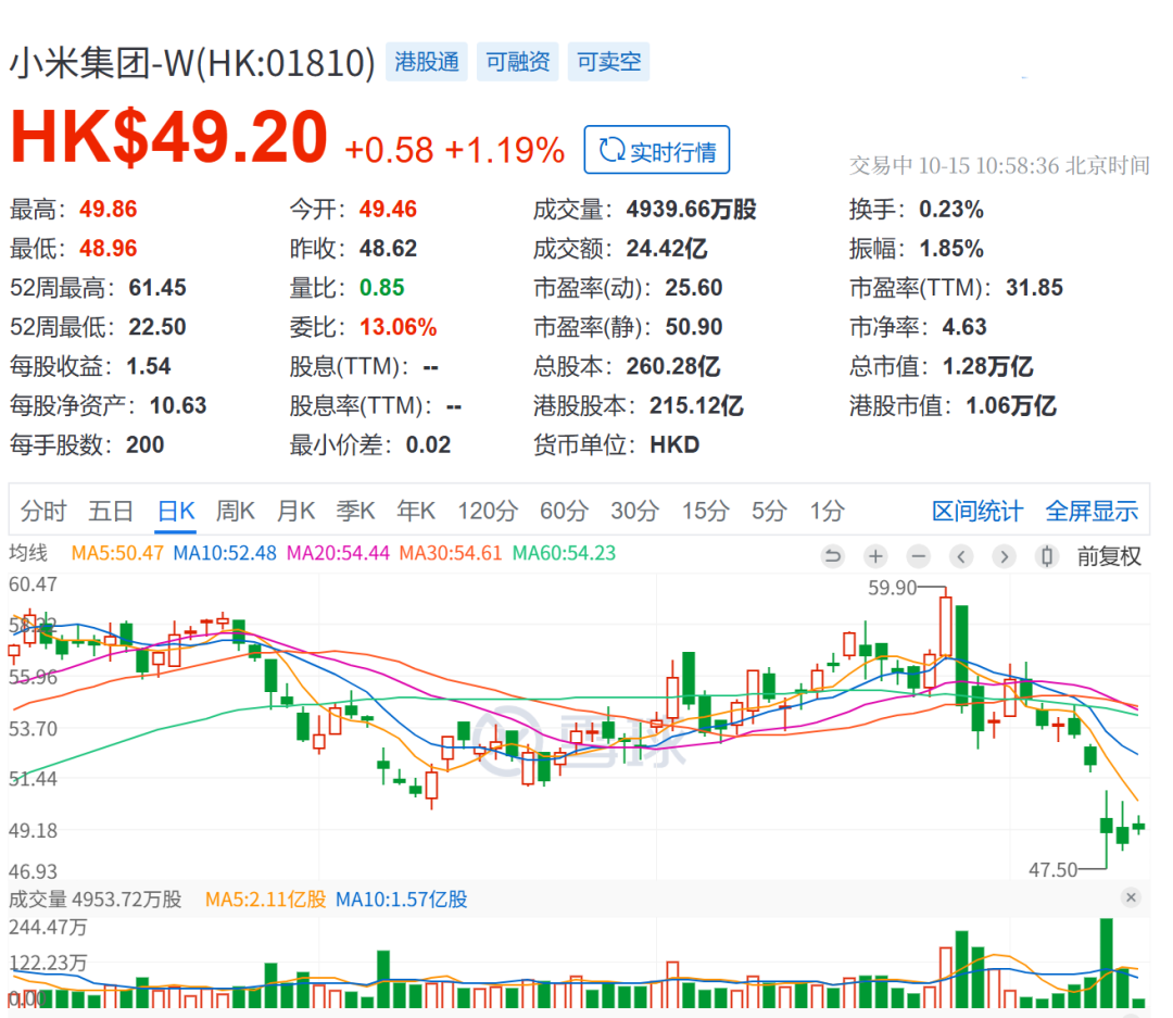 小米SU7事故后,小米集团股价一度大跌,市值蒸发数百亿。