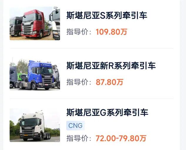 斯堪尼亚以往在中国卖车,即便是最便宜的G系列低配版,也要72万元起步。更高端一些的R系列,售价高达80多万。