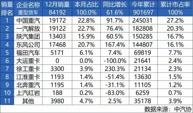 中国虽然也有东风、解放、中国重汽等众多的卡车企业,但它们在重卡方面也主要侧重于中低端市场。