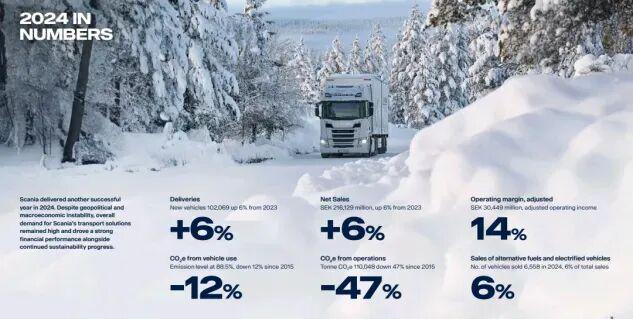 纯看销量的话,2024年,斯堪尼亚一共交付了102069辆卡车,首次超过10万辆,相比竞争对手戴姆勒、沃尔沃、依维柯动辄超过10万+的销量,似乎不够看。