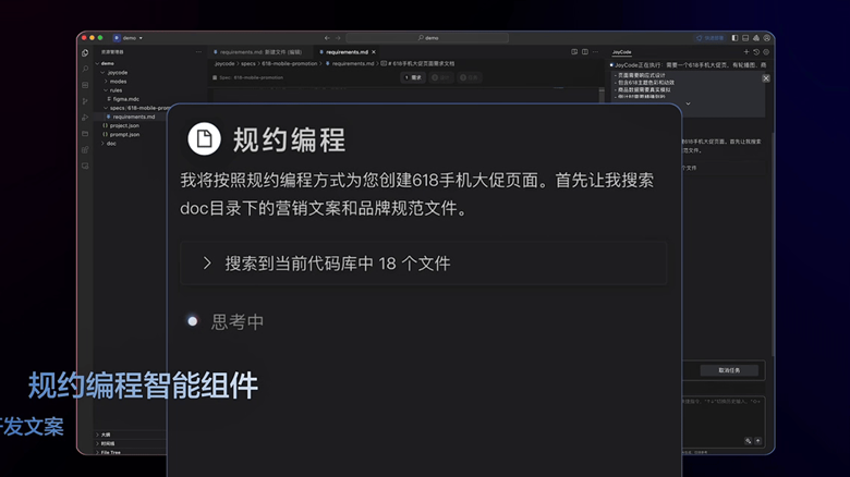 在规约编程方面,JoyCode 2.0通过规约编程机制,基于需求、设计、实施的三阶段工作流程,实现了从需求到交付的端到端覆盖,确保业务意图精准落地为高质量代码,显著降低开发过程中的信息偏差。