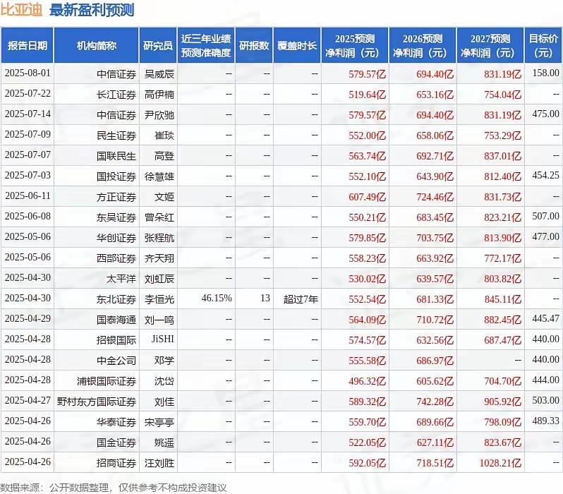机构评级方面,多家机构对2025年净利预期在496.32亿 - 607.49亿区间,2027年最高看至1028.21亿,多数维持“买入”评级。