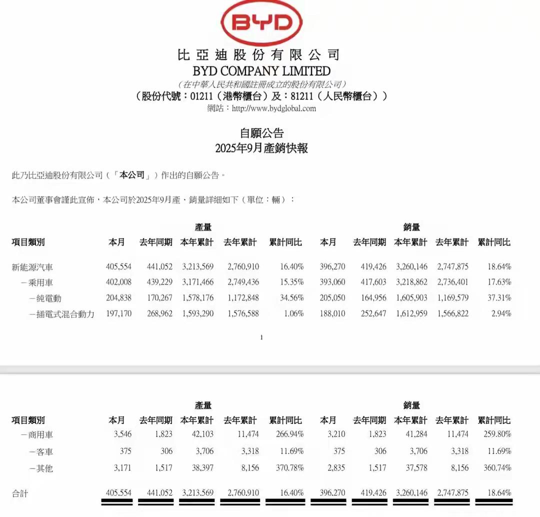 也就是说,比亚迪9月销量的同比下滑仅是阶段性调整,其营收结构、产品矩阵与全球化布局构成的基本盘仍具备较强抗风险能力。