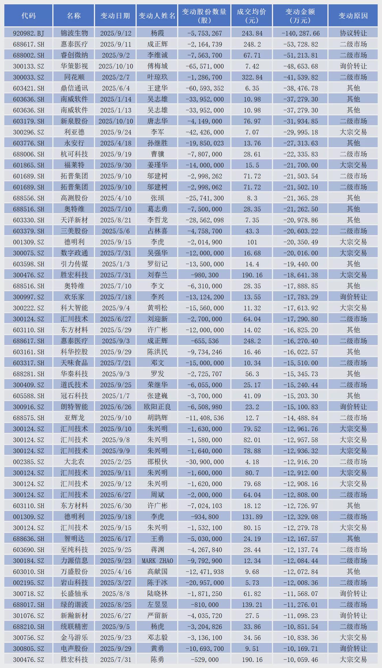另有数据表明,今年以来,截至10月13日,已经有914家上市公司2244位高管进行减持。其中,年内减持次数超过10次以上的,共有120位高管。