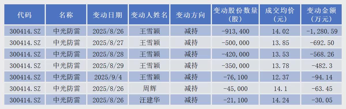 公开资料显示,王雪颖、周辉和汪建华三人在过去几年共实施减持37次,总计减持1185.44万股,占中光防雷总股本的约3.64%,共套现近1.55亿元。