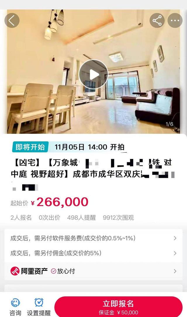 某司法拍卖平台上“凶宅”拍卖信息26.6万元竞拍成都万象城附近一套房屋