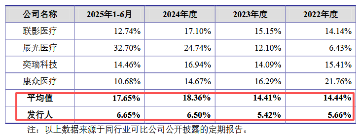 2022年至2024年以及2025年上半年,健信超导的研发费用率分别为5.66%、5.42%、6.50%和6.65%,与同行业可比公司均值14.44%、14.41%、18.36%、17.65%相比,分别低了8.78、8.99、11.86和11个百分点,差距不小。