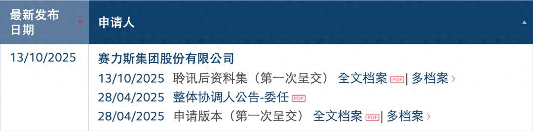 10月13日,据港交所网站信息透露,赛力斯已通过港交所主板上市聆讯。联席保荐人为中金公司、中国银河国际。这一消息也意味着,赛力斯在港股上市进程又近了一步,或很快在香港上市。
