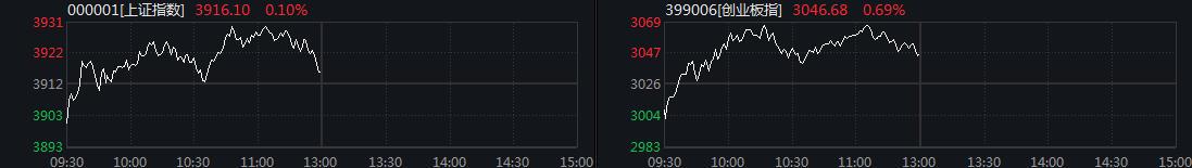中新经纬10月16日电 16日,A股三大股指震荡走强。截至午盘,上证指数涨0.10%报3916.10点,深证成指涨0.15%报13139.00点,创业板指涨0.69%报3046.68点。