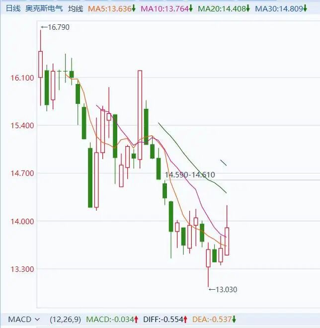 上市至今,奥克斯电气股价持续阴跌。截至今日收盘,股价报收13.87港元/股。相较于发行价,破发幅度达到20%。