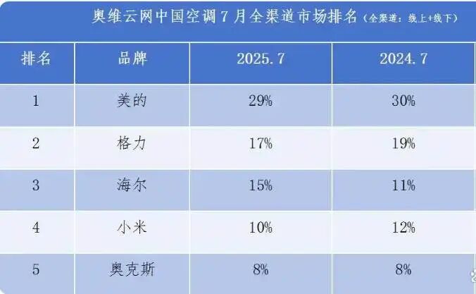 据三方机构奥维云网的数据,目前奥克斯国内市场份额持续徘徊在8%左右,低于美的、格力、海尔、小米等竞品。