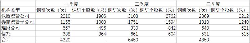 三季度资管机构调研热情下降