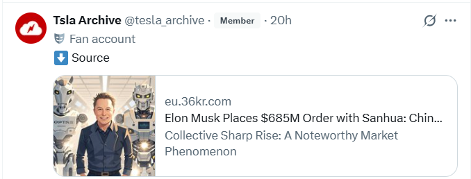 @tesla_archive后来还转发了这则消息,并在评论区附上了消息来源。