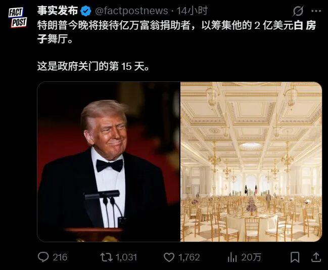 批评者认为,就目前的设计来看,所谓的新宴会厅将由金色和白色为主基调构成,与白宫本身的设计风格格格不入。一些美国网友调侃道:“想知道美联储主席鲍威尔如何看待这笔巨额花费。”另有网友表示,政府关门半个月了,许多公务员都收不到工资,特朗普却大宴富豪,不知作何评价。