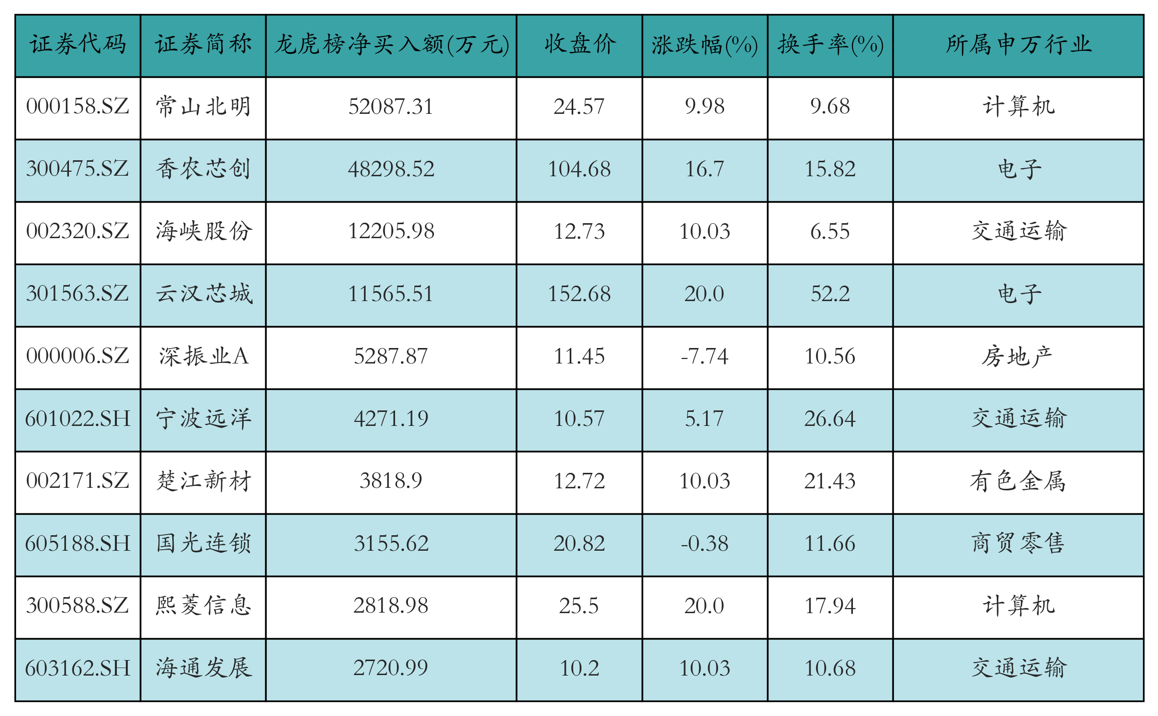 昨日龙虎榜营业部净买入额前10详情见下表: