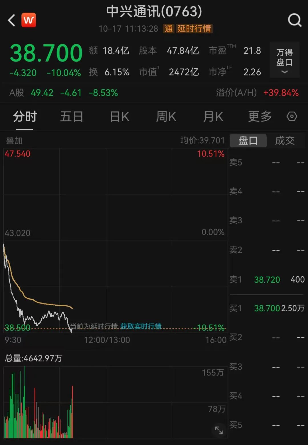 港股中兴通讯跌超10% 港股中兴通讯跌超10% 中兴通讯港股为什么大跌