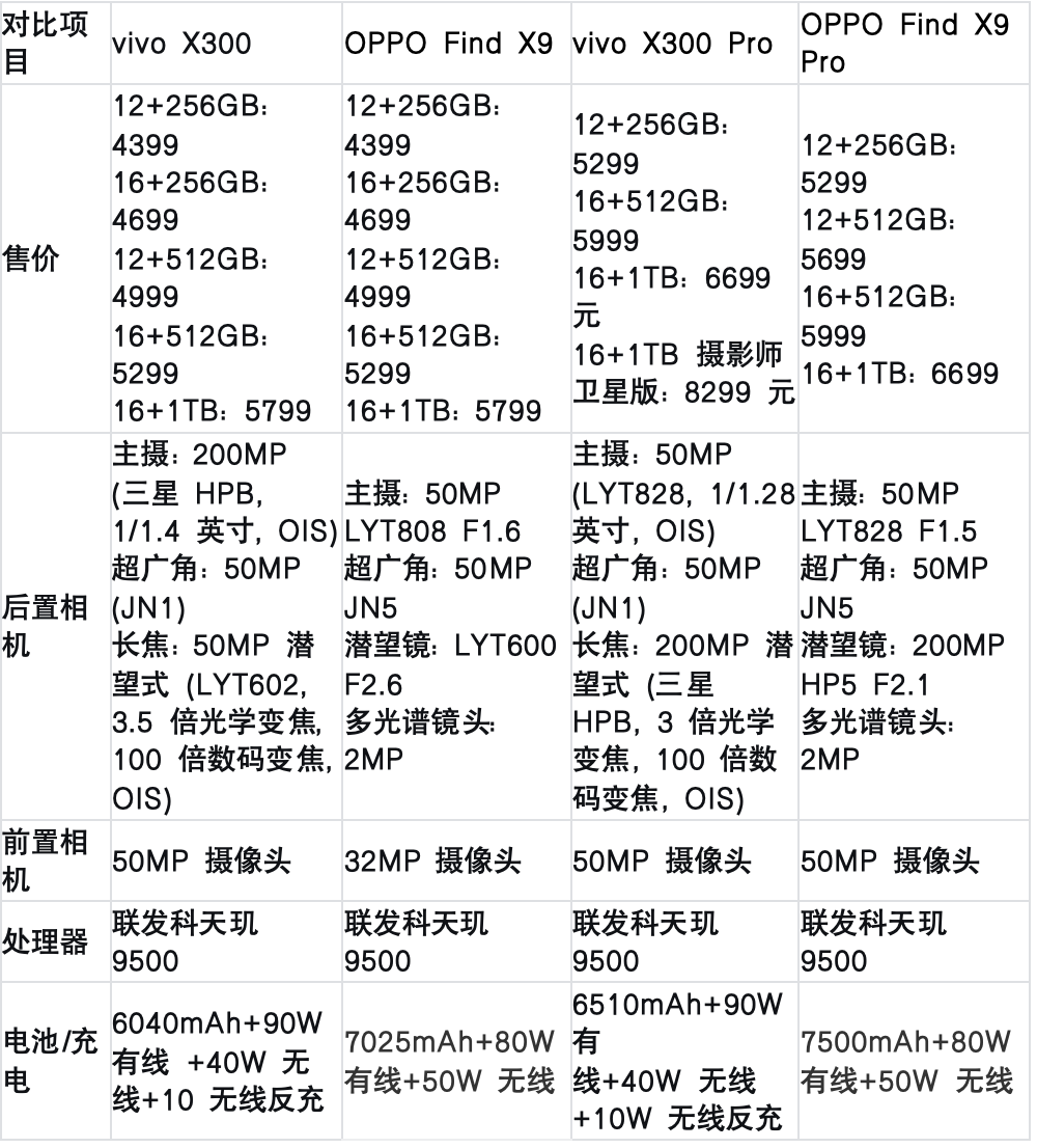 在同价位段,vivo也刚刚发布了X300系列,并在标准版与Pro版本上都打出了极具竞争力的配置与定价策略。这意味着,Find X9必须同时应对“老用户信任修复”和“新对手市场挤压”两道考题。