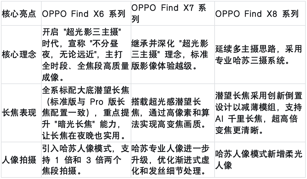 更重要的是,Find系列终于找到了自己的影像主线——长焦是核心。从X6开始,这条思路被持续强化,与哈苏联名的延续,也让品牌在高端影像市场重新建立辨识度。