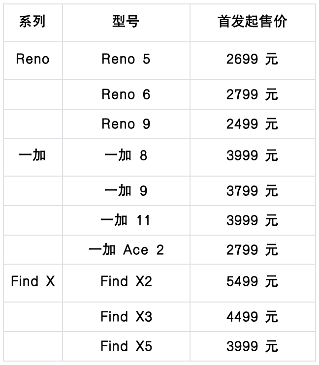认识到高价策略受阻,OPPO在Find X3系列上调整姿态:标准版降价1000元,顶配版进入5000元以下区间。开售15秒内销售额破亿,但后续动能不足,某电商平台单月销量不足3万台,远落后于同价位的红米K40、小米10S。Find X5系列尝试混合定价策略:标准版再降500元,顶配版小幅上调,结果依然不佳,京东首发一多小时总销量不足7000台,当月全渠道最高销量未破3万台。