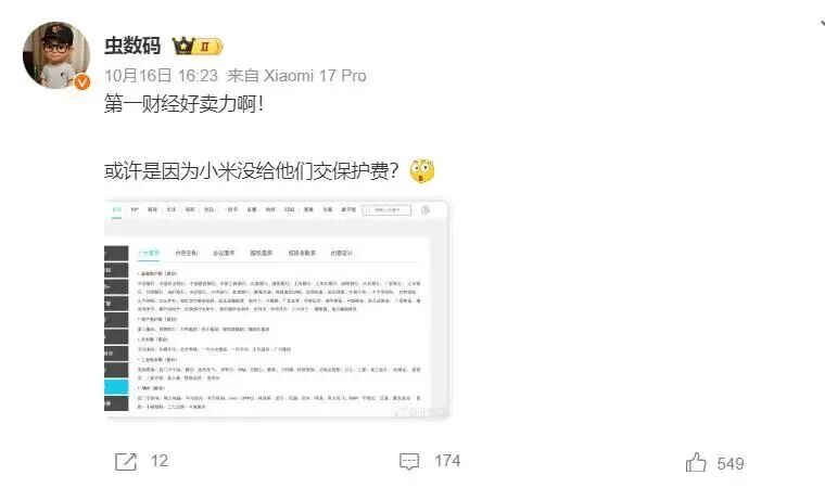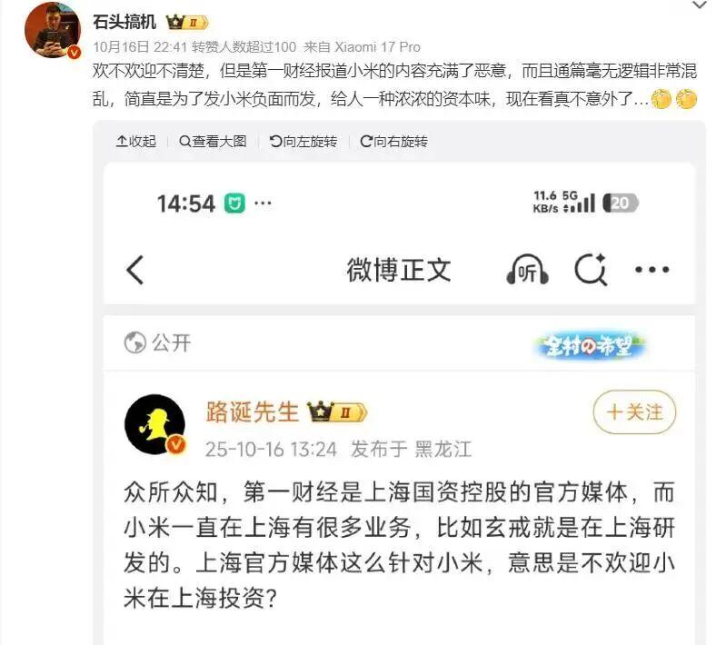 在部分米粉看来,这篇评论“带节奏”过重。有数码类博主发文讽刺称,“第一财经好卖力啊,难道是因为小米没交保护费?”还有人批评报道“通篇充满恶意、逻辑混乱”。