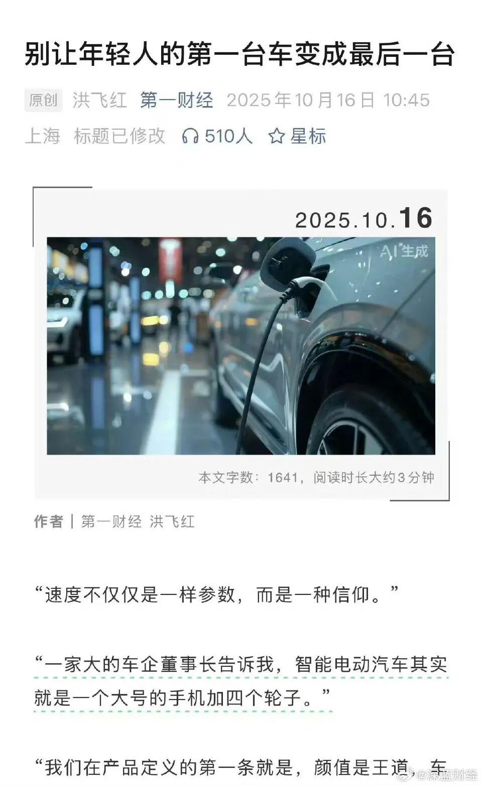 舆情起点来自于第一财经昨日发表的一篇评论——《小米,别让年轻人的第一台车变成最后一台》。文章从安全管理和品牌责任角度提出质疑,引发广泛讨论。不久后,该文标题中“小米”两字被删除,改为《别让年轻人的第一台车变成最后一台》。