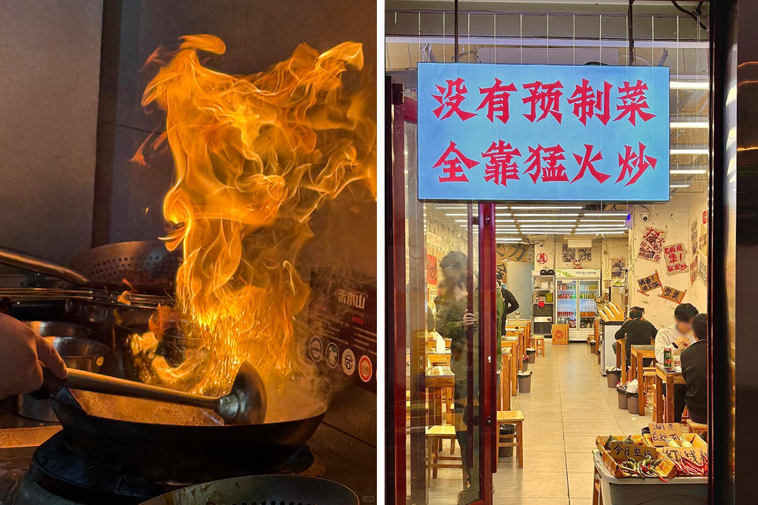 即使有品牌公开使用AI智能炒菜机,但机器仅仅参与炒制部分,新鲜现切的食材与店内的独特调味,甚至自己煎制的猪油,仍然保证了年轻人对它的热情。