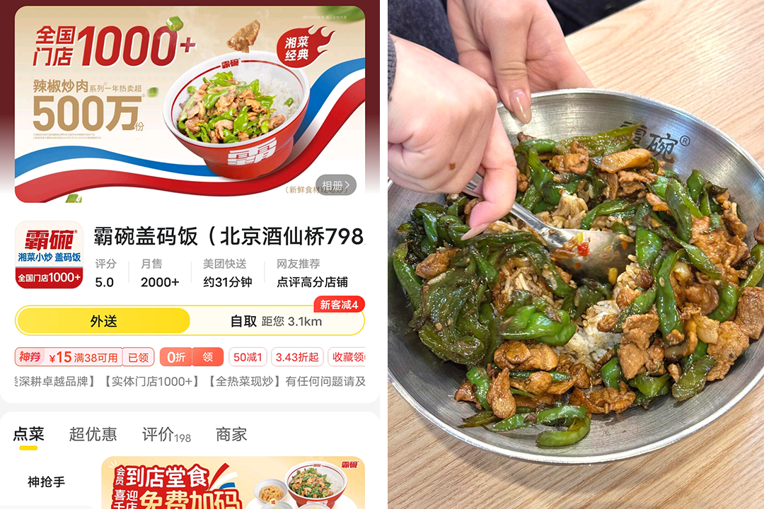 作为今年势头最猛的头部盖碗饭品牌,霸碗在外卖平台上的封面自称“全国门店1000+”,其中辣椒炒肉系列一年热卖500万份。另外,嘉定都市网报道,霸碗一年就能卖出超7000万份盖码饭。