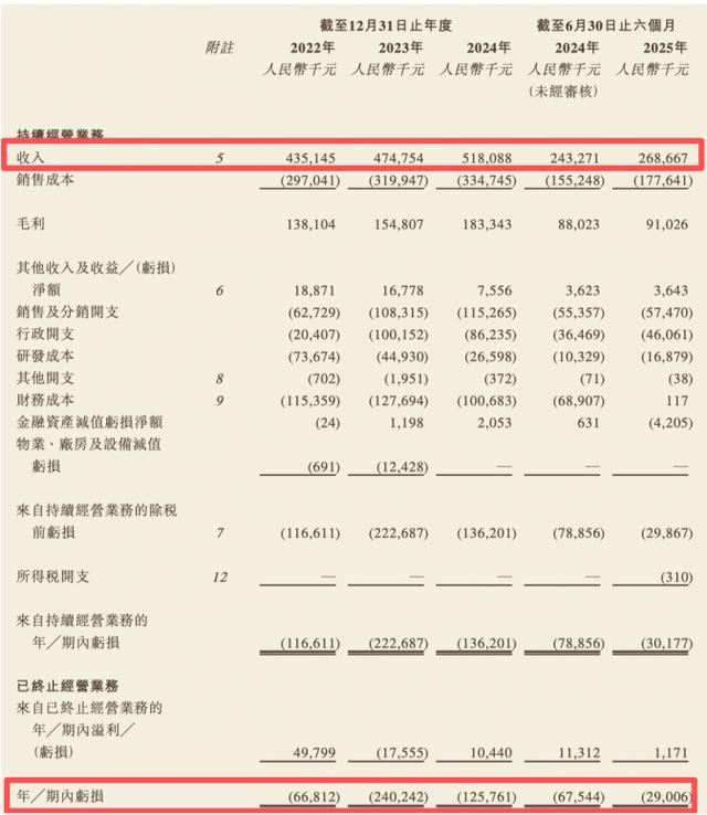 然而,手握多项资质的安诺优达,却始终未能走出亏损困局。2022年至2025年上半年(下称“报告期”),安诺优达持续经营业务收入分别为4.35亿元、4.75亿元、5.18亿元、2.69亿元,年内亏损分别约为0.67亿元、2.4亿元、1.26亿元、0.29亿元。持续“增收不增利”的状态,为其资本市场之路蒙上一层阴影。