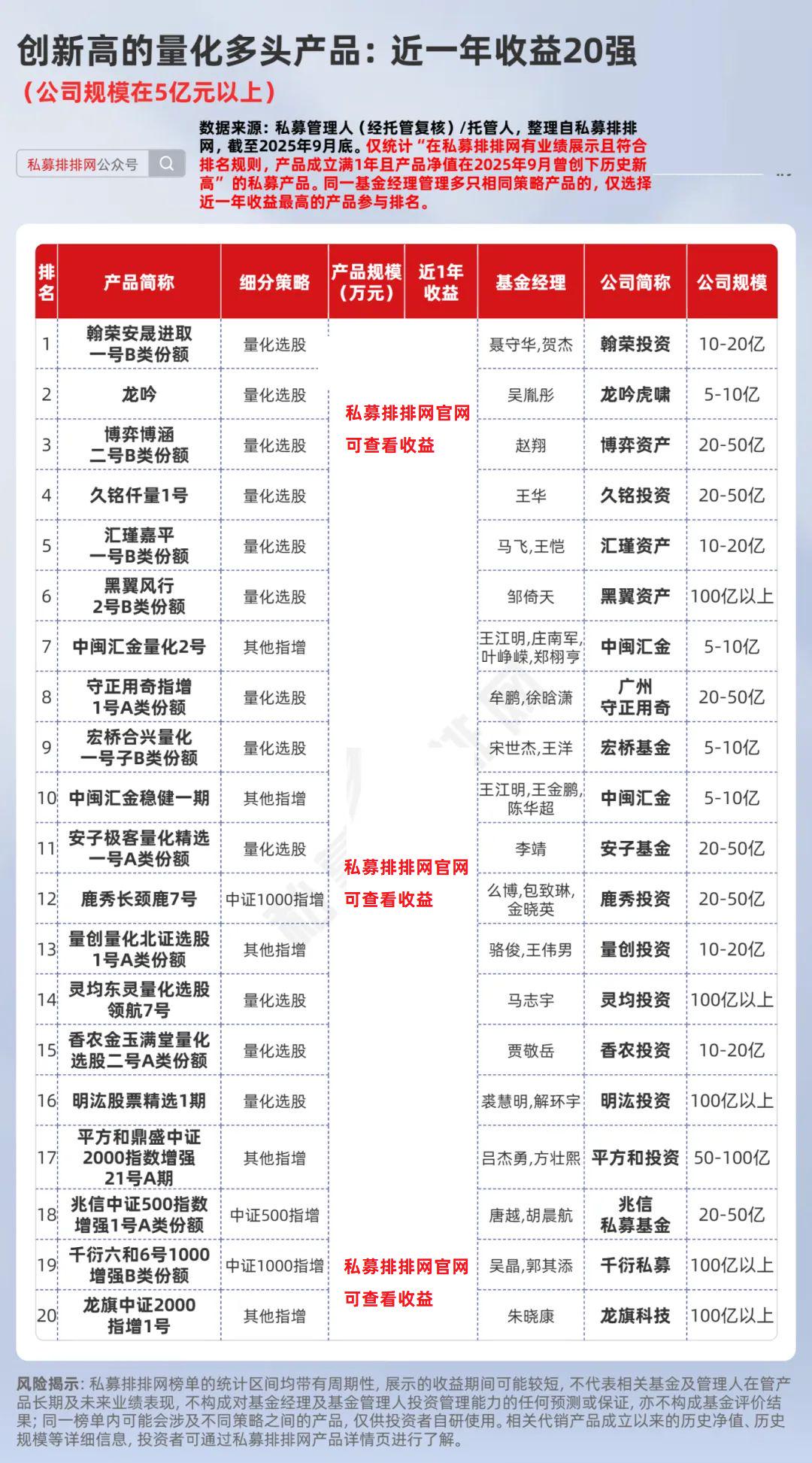 股票-量化多头:黑翼、灵均、明汯、龙旗旗下产品居前20