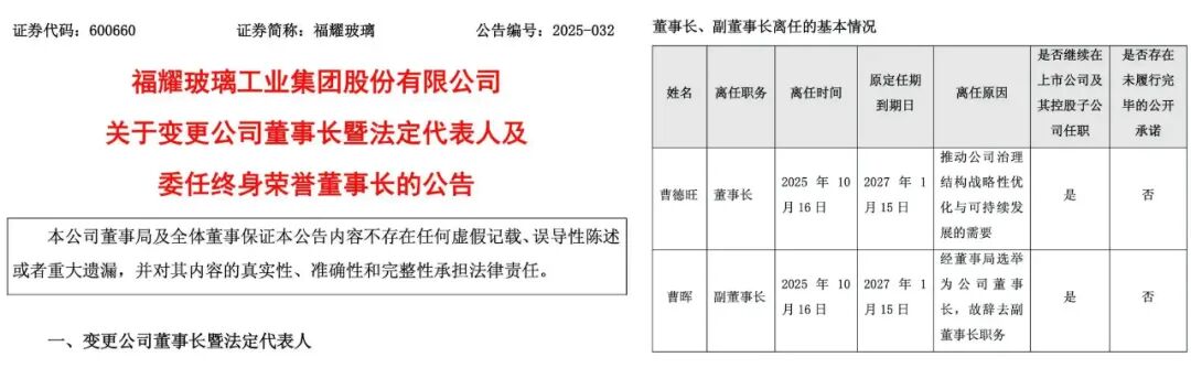“今后,曹德旺将以终身荣誉董事长等身份,继续为战略规划与长远发展,贡献智慧与力量。”公告表示,这对父子的工作,将进行妥善交接。