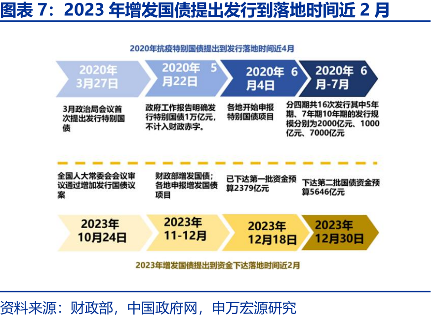 同时,10月下旬召开的全国人大常委会是否涉及审议新增政府债务限额亦值得关注。新增政府债务限额政策空间较大,但须经过全国人大常委会审批,且落地到地方项目所需时长或至少两个月,因此四季度增量财力或更多于次年形成实物工作量。2023年10月下旬,中央增发一万亿元国债,但其发行及分配使用更多在2023年末及2024年一季度。