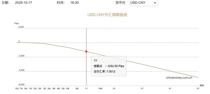 比如,衡量未来三个月人民币波动的美元兑人民币 三个月隐含波动率指标 显示,人民币未来三个月时间在6.9433至7.2195区间内交易的可能性为78%;再比如,10月17号,人民币外汇掉期曲线显示三个月后,人民币汇率为7.1165。