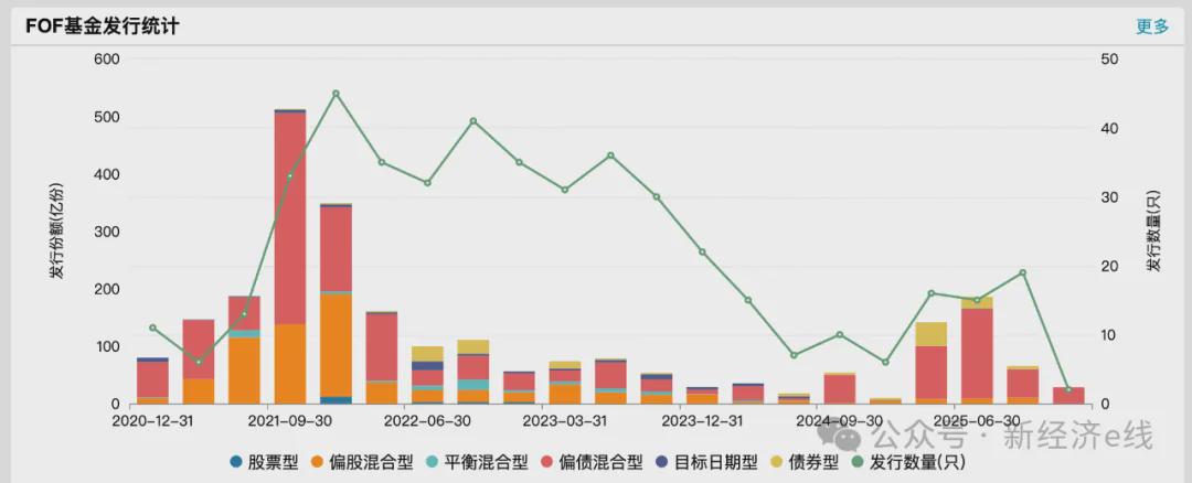 在FOF业绩大幅提升的同时,新产品发行情况也出现明显好转。在年内新成立的1163只公募基金中,东方红盈丰稳健配置6个月持有和富国盈和臻选3个月持有的募集规模分别位列全市场第一大和第二大,其发行规模分别高达65.73亿元和60.01亿元。以上两只FOF产品均为混合型FOF基金,分别成立于2025年6月19日和2月21日。