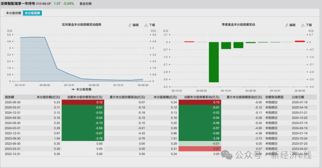 2025年8月26日,浙商基金披露的浙商智配瑞享一年持有期债券型基金中基金(FOF)清算报告表明,其基金份额持有人大会于2025年7月17日表决通过了《关于终止浙商智配瑞享一年持有期债券型基金中基金(FOF)基金合同有关事项的议案》。据悉,该基金基金合同于2022年7月19日正式生效,基金合同生效日的基金份额总数为53006.03万份。截至2025年7月23日(最后运作日),基金份额总额仅录得2187.27万份,较成立之初大幅缩水95.87%。