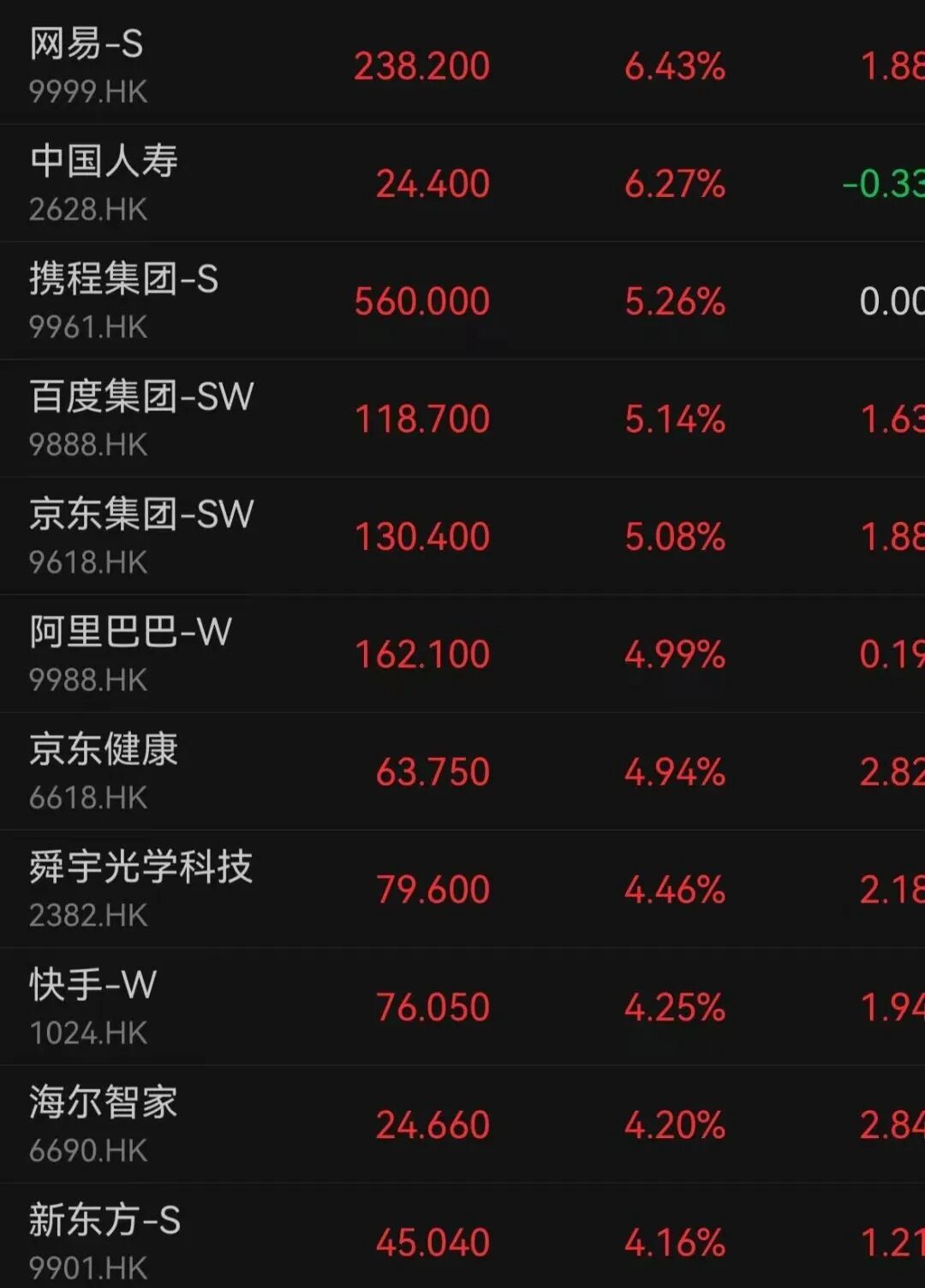 科网股全线反弹,网易大涨超6%,百度集团、京东集团涨超5%,阿里巴巴涨近5%。