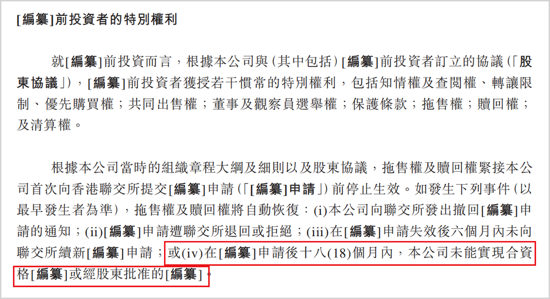 更为紧迫的是,公司资产负债表上有一笔高达1.3亿美元的“赎回负债”,远超账面现金储备,形成了明显的偿债压力缺口。该负债源于早期融资中与投资方签订的对赌条款,若公司未能在首次递交上市申请后的第18个月月末前成功上市,投资者有权要求赎回股份。