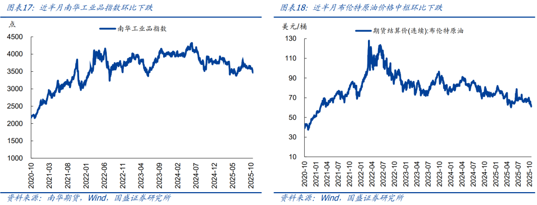 2、具体看,近半月(2025.10.6-10.19)高频表现如下:>供给:上中下游开工多数回落;