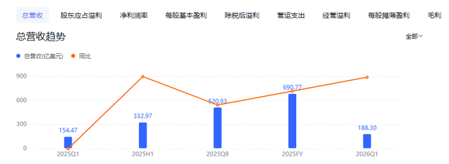 截至26财年Q1的财报显示,联想集团实现营收188.30亿美元,同比增长21.90%,实现股东应占溢利5.05亿美元,同比大涨107.64%,实现净利润率2.68%,同比大增70.34%;