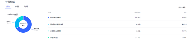 其中,来自智能设备业务集团的营收达到134.59亿美元,占比 71.48%,来自基础设施方案业务集团的收入42.90亿美元,占比22.27%,方案服务业务集团创造营收22.58亿元,占公司总营收比重为11.99%。