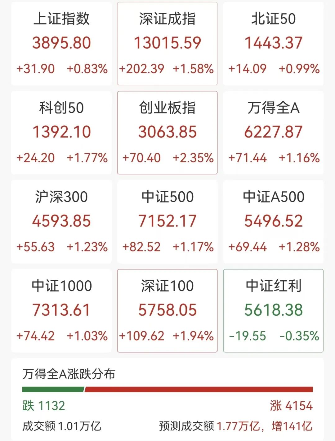 创业板指一度拉升涨逾3%。超硬材料、苹果产业链、存储芯片等方向涨幅居前,截至11:00,沪深京三市上涨个股超4100只。