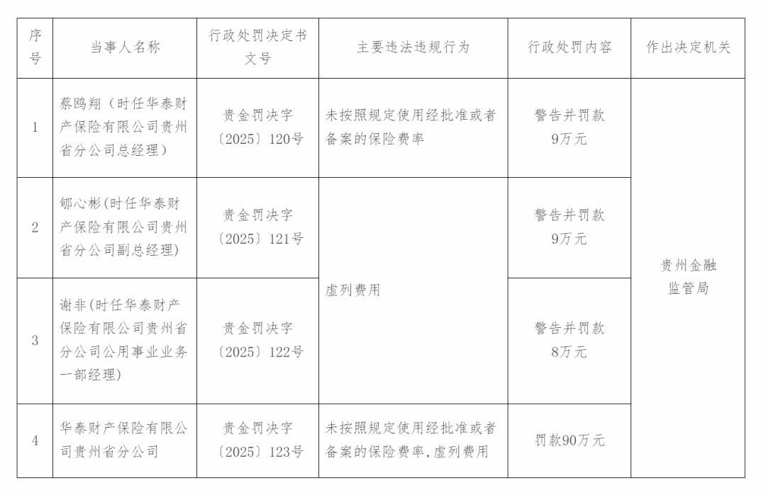 华泰财产保险有限公司贵州省分公司因两项违规行径,被处以高达90万元的罚款。