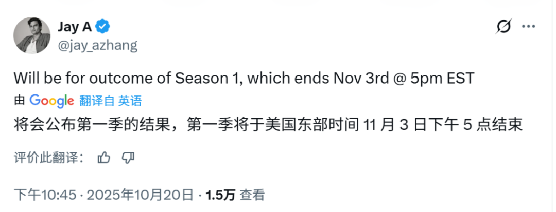 发起这场实验的Jay在X上说,第一季测试将于11月3日结束,到时候看结果如何。
