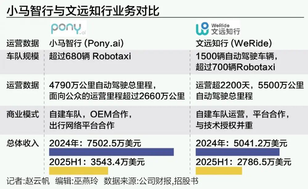 而除Robotaxi相关业务之外,两家公司的经营侧重点也略有不同。