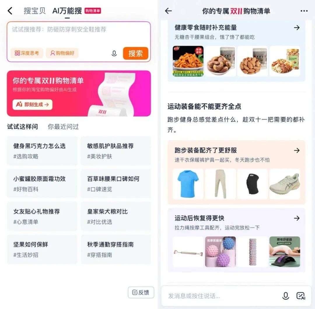 消费者的体验变化最为直观。例如,有用户发现,天猫双11的AI能根据她的购买习惯与喜好,自动生成一份涵盖护肤品、日用品乃至跑步装备的个性化购物清单。“它突然变得有‘灵气’了,不只是说一下动一动的机械。”