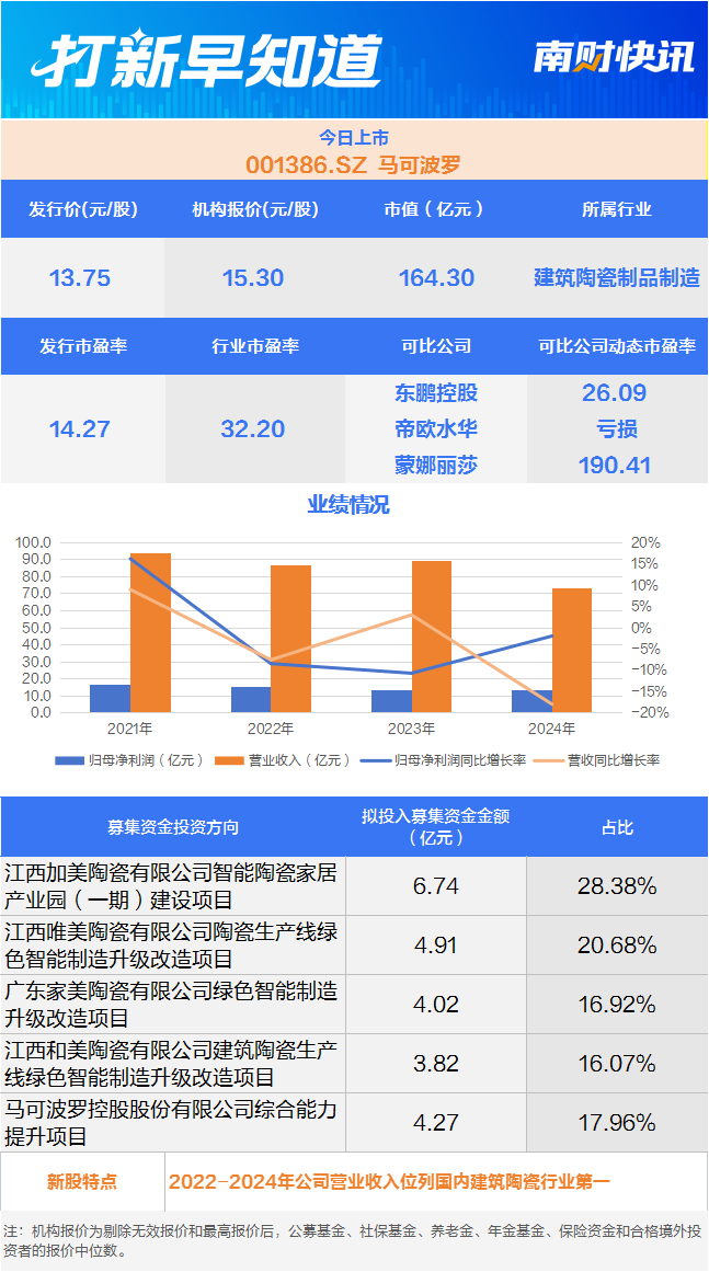 10月22日,可申购北交所上市的丹娜生物(920009.BJ);另有一只新股上市,为深市主板的马可波罗(001386.SZ)。